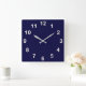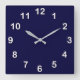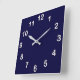 The clock is NOT navy blue. It looked very black. But when I called to return the item the young lady was very helpful and hopefully I will get it returned with no problems. If you are talking about the numbers, they were printed fine. There was no other printing on the clock.