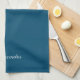 Solid Colour Dark Teal Blue template White Script Tea Towel