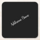 Solid Colour Modern Basic Black Monogrammed Square Paper Coaster