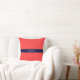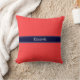 Solid Coral Red, Navy Blue Ribbon Name Monogram Cushion