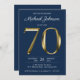 Solid Gold Text Navy Blue Classy 70th Birthday Invitation