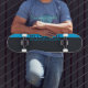 This solid two-colour design offers a base painted with dark grey accompanied by a bright blue edge. You can customise the name on the board.