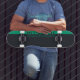 This solid two-colour design offers a base painted with dark grey accompanied by a bright green edge. You can customise the name on the board.