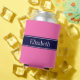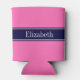 Solid Hot Pink #2, Navy Blue Ribbon Name Monogram Can Cooler