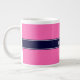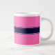 Solid Hot Pink #2, Navy Blue Ribbon Name Monogram Large Coffee Mug