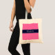 Solid Hot Pink #2, Navy Blue Ribbon Name Monogram Tote Bag