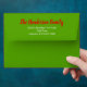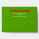 A solid, bright, jolly green is featured on this colourful holiday envelope, with customisable back flap text and a solid holly red interior lining