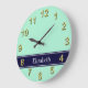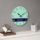 Solid Light Mint, Navy Blue Ribbon Name Monogram Large Clock