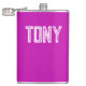 The flask itself is fine. It’s a cheap flask, obviously bought in bulk, however am prepared to overlook that. Given that it is a personalized item, I would have liked to have seen gift boxing instead of the generic packaging. Terrible printing, and/or quality. It’s a cheap, tacky vinyl. It is not cut straight and is also applied in a way that it is overhanging the bottom, causing the glue to catch on items and it will eventually roll and tear, damaging the wrap.