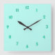Solid Mint Green with Minty Numbers Square Wall Clock