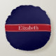 Solid Navy Blue Cranberry Red Ribbon Name Monogram Round Cushion