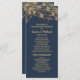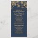 Elegant solid navy blue with glittering gold string lights and bokeh wedding program. Contact us for help with customisation or matching products.