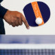 Solid Navy Blue, Pumpkin Ribbon Name Monogram Ping Pong Paddle