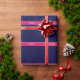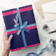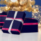 Solid Navy Blue, Raspberry Ribbon Name Monogram Wrapping Paper