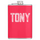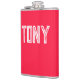 Solid Neon Red Colour Custom Name Monogram Hip Flask
