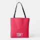 Solid Neon Red Colour Custom Name Monogram Tote Bag