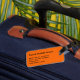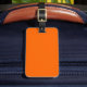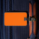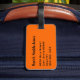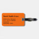 Luggage tag with name and address on a solid orange background colour. Personalise with your name and address information using the easy templates. Font colour, font style, and font size are customisable.