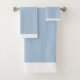 Classic solids with white trim in summer colours. A great way to change the look of your home for the season. Brightly coloured towel set in bright primary colour and white. Smart trim at top and bottom of towels.