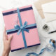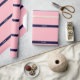 Solid Pink, Navy Blue Ribbon Name Monogram Wrapping Paper