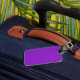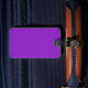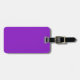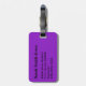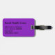 Luggage tag with name and address on a solid purple background colour. Personalise with your name and address information using the easy templates. Font colour, font style, and font size are customisable.
