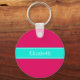 Solid Raspberry, Bright Aqua Ribbon Name Monogram Key Ring