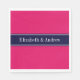 Solid Raspberry, Navy Blue Ribbon Name Monogram Napkin