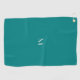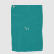 Golf towel with blue-green , teal solid colour background and light grey font .Simple and trendy design by Alma Wad .Personalise it with your monogram now ..