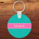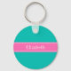 Solid Teal, Hot Pink #2 Ribbon Name Monogram Key Ring