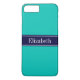 Solid Teal, Navy Blue Ribbon Name Monogram Case-Mate iPhone Case