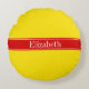 Solid Yellow, Red Ribbon Name Monogram Round Cushion