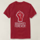 Raise your hand and give five to solidarity. Fist and Solidarity Forever text in red on a T-shirt. Customise shirt by changing style and colour.