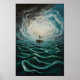 Solitary Boat in Turbulent Seas Ocean Landscape Poster
