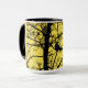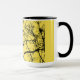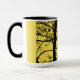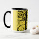 Combo coffee/tea mug with solitary crow design against a yellow background.