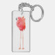 Original fine art painting of a pink Caribbean flamingo by artist Carolyn McFann of Two Purring Cats Studio printed on a quality and customisable acrylic keychain for tropical bird fans.
