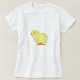 A close up photo of a yellow toy baby chicken on a transparent background.