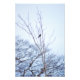 A photograph of a rare sight, a Red-wing Blackbird. The endangered bird is perched high in a tree. It is Autumn and the trees have lost all their leaves. The sky is clear of clouds and is a soft light blue hue. Image Copyright ©2021 Kimberly J Tilley. The red-wing is going extinct because it's habitat is constantly being built on for shopping centres and housing complexes. Most wetlands are now just a little strip on the edge of restaurants, malls, homes, and seen as nothing more than a city culvert. And then the area suffers flooding because the natural water management was destroyed.