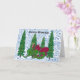 Majestic pine trees and a regal red and green dragon stand against a snowy background. Personalise with your own Yuletide greeting.