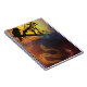 Capture the mystical spirit of the Australian outback with this unique customisable spiral notebook. The design features a striking photograph of a kookaburra silhouette perched on a gum tree branch, captured during the Solstice sunset. This imagery is intricately woven with celestial symbolism, illustrated by a serpent adorned with the phases of the moon. The colour palette of rich oranges, deep browns, earthy ochre, and solid black evokes the raw, vibrant energy of the desert landscape at dusk. This customisable spiral notebook is a piece of art, telling a story of nature, cosmos, and ancient symbolism. Add your name or notebook title on the cover OR just leave it blank to enjoy the artistry.