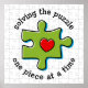 Special design for autism awareness with a red heart in a puzzle piece. Message says SOLVING THE PUZZLE ONE PIECE AT A TIME. Jigsaw puzzle pattern background. PinkInkArt original!