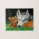 Somali Cat Siberian Husky Cute Friends Huddle Love Jigsaw Puzzle