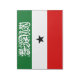 This design features the flag of Somaliland (officially the Republic of Somaliland), which is a self-declared state, internationally considered to be part of Somalia. The government of the de facto state of Somaliland regards itself as the successor state to the former British Somaliland protectorate, which, in the form of the briefly independent State of Somaliland, united as scheduled on 1 July 1960 with the Trust Territory of Somaliland (the former Italian Somaliland) to form the Somali Republic. Somaliland lies in northwestern Somalia, on the southern coast of the Gulf of Aden. It is bordered by the remainder of Somalia (per international recognition) to the east, Djibouti to the northwest, and Ethiopia to the south and west. The capital and the largest city of Somaliland is Hargeisa.