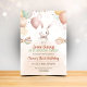 Celebrate your little one's first birthday with this enchanting Some Bunny is One Invitation! Featuring a sweet daisy-crowned bunny, pastel rabbit balloons, and delicate watercolor butterflies, this design is perfect for a magical garden-themed first birthday party.