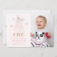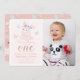 This cute " Some Bunny is turning one " girl's first / 1st birthday invitation features your photo, a little bunny with a flower crown, and butterflies on a pink background framed by a white border. The reverse side features a pink background with floral patterns. Personalise for your needs. You can find more matching products at my store.