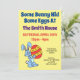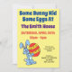 Some Bunny Hid Some Eggs cute Easter Egg Hunt Invitation. It features a cartoon bunny holding a colourful, red, yellow and orange Easter Egg. A great invite for any children's Easter Egg Hunt. Get them excited for your home event with this cute invite!