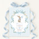 Celebrate your little one’s first birthday using our charming bunny-themed invitation! Featuring a whimsical watercolor bunny holding a blue balloon, florals, and soft pastel gingham background, this invitation is perfect for a sweet celebration. The elegant yet whimsical design is ideal for spring birthdays, garden parties, or any cheerful first birthday gathering.