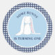 Some Bunny is One blue Gingham Birthday Classic Round Sticker