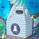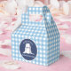 Some Bunny first birthday spring blue gingham birthday party favour boxes.