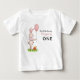 Hop into the sweetest celebration with this "Some Bunny is Turning One" birthday Guest of honour t-shirt sign! Featuring an adorable bunny holding a pink balloon next to a basket of fresh carrots on a grassy patch, this charming design is perfect for your little one’s first birthday. The soft off-white background and elegant mix of script and serif fonts add a timeless touch. The back continues the whimsical theme with the same bunny illustration and the heartfelt message "I hope to see you"—plus space for additional details. Easily customisable for your special day!