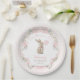 Designed with a soft, vintage watercolor style, this adorable paper plate features a whimsical watercolor bunny holding a pink balloon, delicate daisies and greenery accents, and elegant blush pink bows wrapped in flowing ribbon. The gentle pastel palette and whimsical layout offer a perfect touch of coquette girly elegance for your celebration.