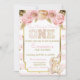 Adorable First birthday Invitation with the look of glitter and foil.
